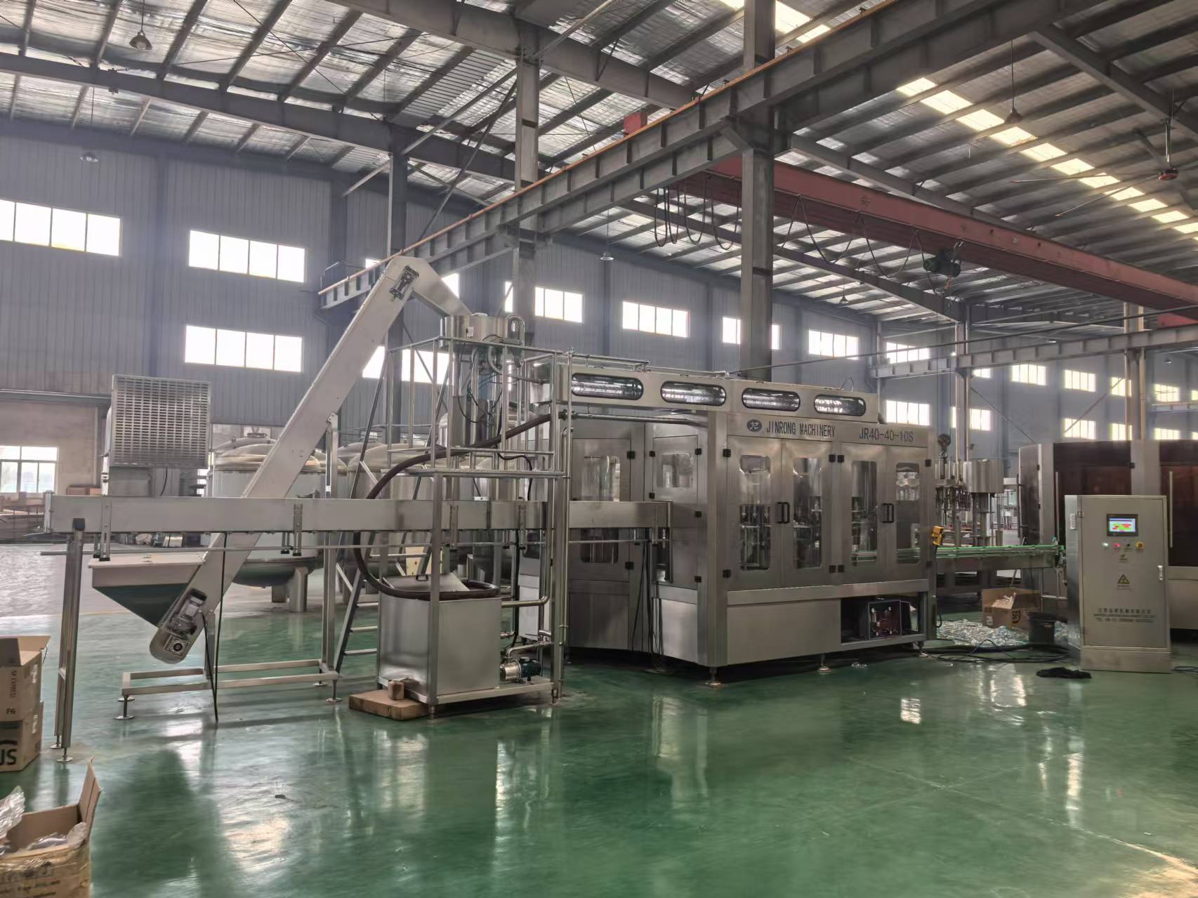 金榮機械主導產品有沖瓶灌裝旋蓋三合一機組、灌裝旋蓋二合一機組、灌裝封口二合一機組、全自動吹瓶機、加侖桶裝系列機組、水處理生產線、自動就地清洗系統、各種殺菌成套設備、沖瓶灌裝封口生產線、果汁果茶飲料成套設備等