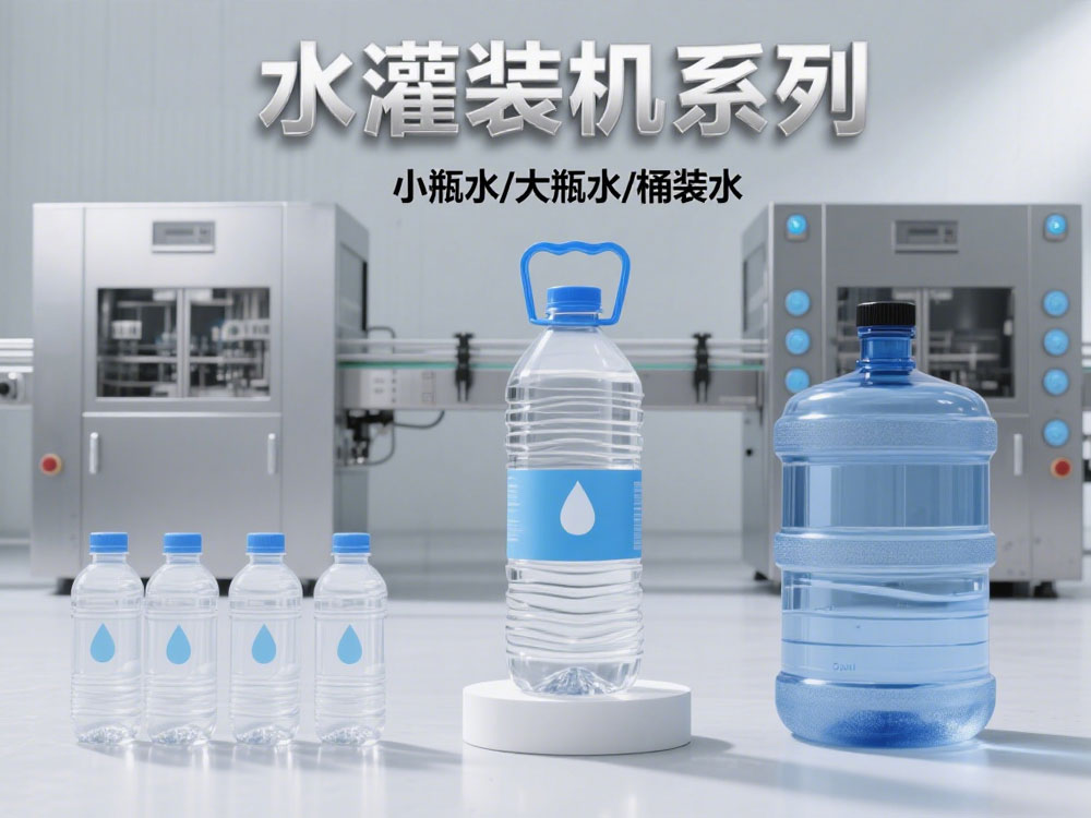 灌裝線配套設(shè)備:吹瓶機、礦泉水灌裝機?、貼標(biāo)機(套標(biāo)機、熱熔機)、紙箱包裝系統(tǒng)、碼垛機等。